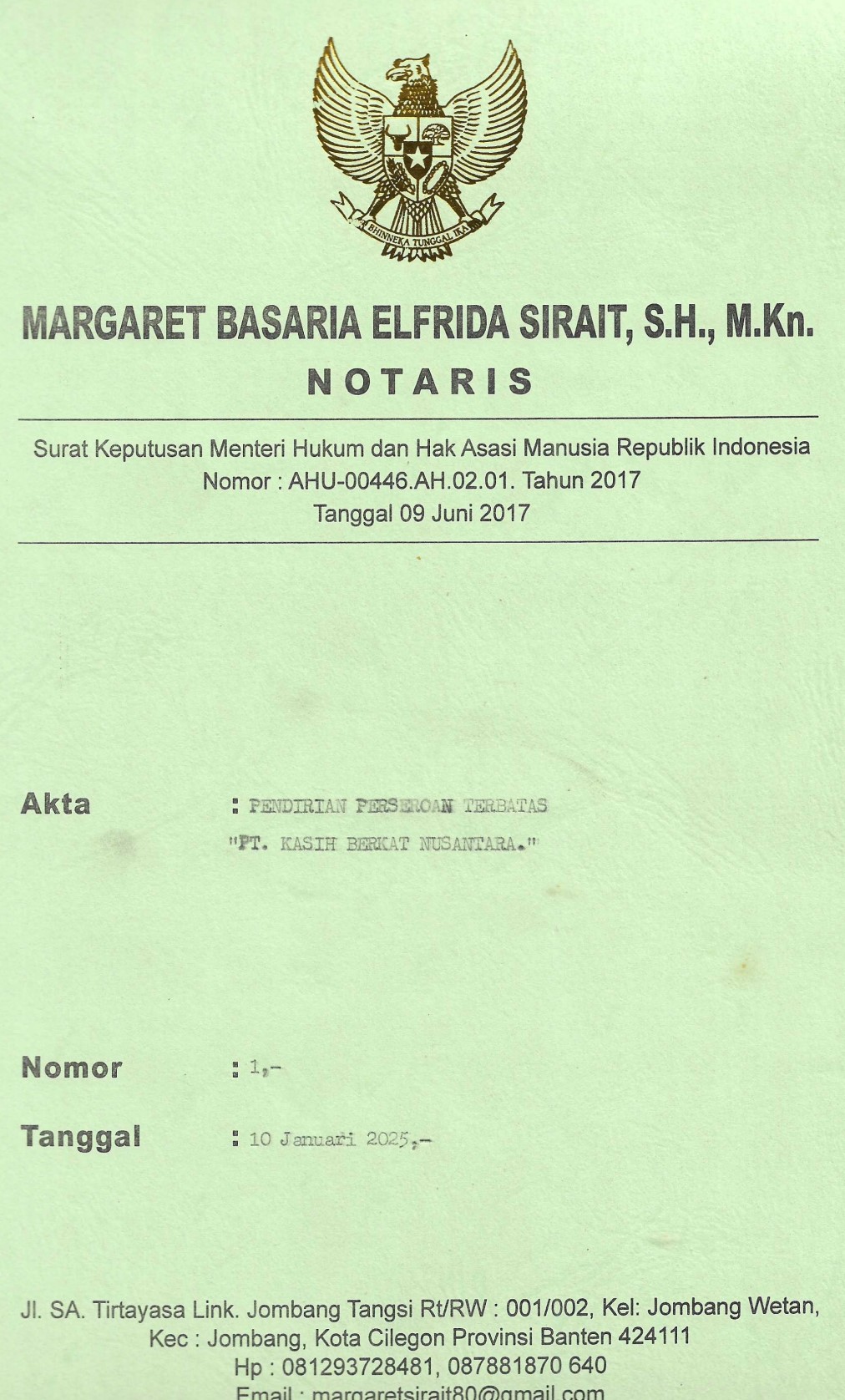 Nomor AHU-00446.AH.02.01 Tahun 2017 Tanggal 09 Juni 2017