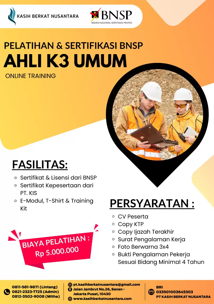 Saya akan merekomendasikan Kasih Berkat Nusantara bagi siapa pun yang ingin mengambiul pelatihan di Bidang K3. Tersertifikasi BNSP